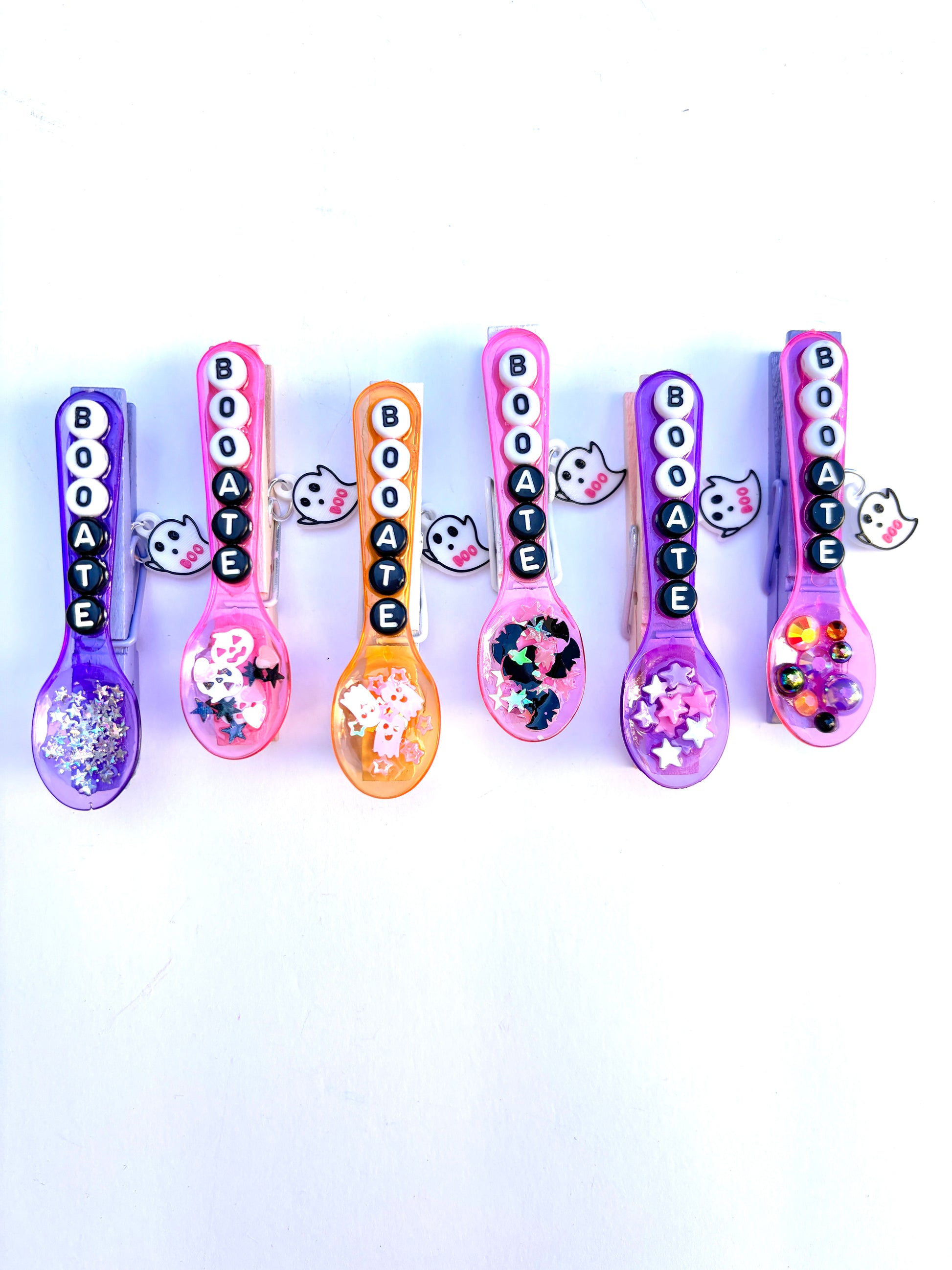 Each pin measures approximately 2.8”L x 3/8”W. Made with standard wooden clothespins, spray painted and sealed and embellishments are secured using E6000 and clear Gorilla Glue. *Sprinkles are made of clay and are non-edible. Colors of pins and spoons may vary slightly from photo.*