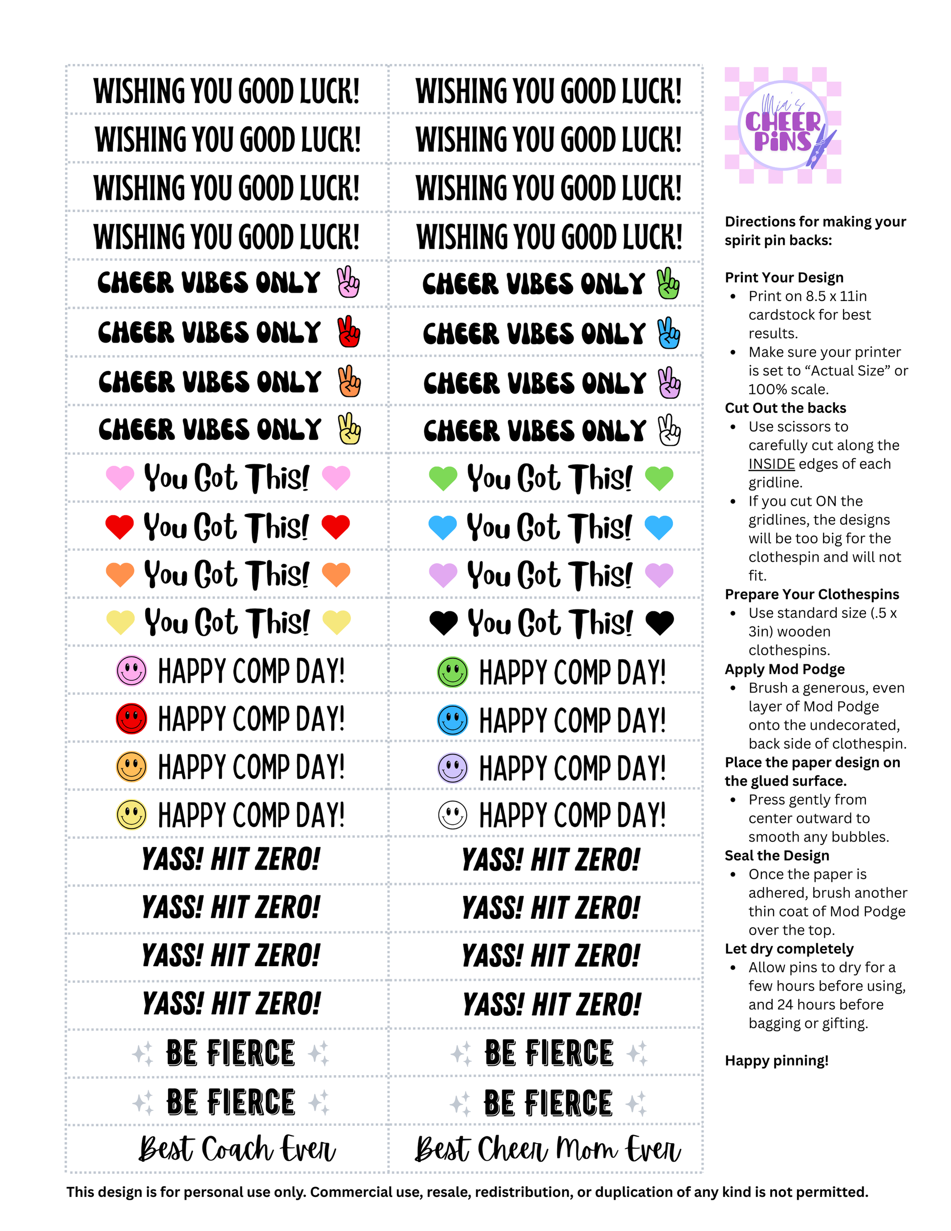 Finish the backs of your cheer pins with this cute, easy-to-use, printable design.